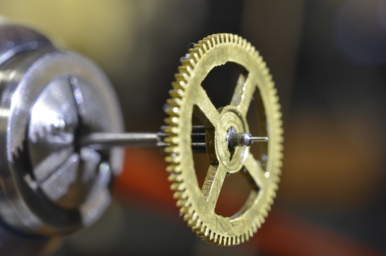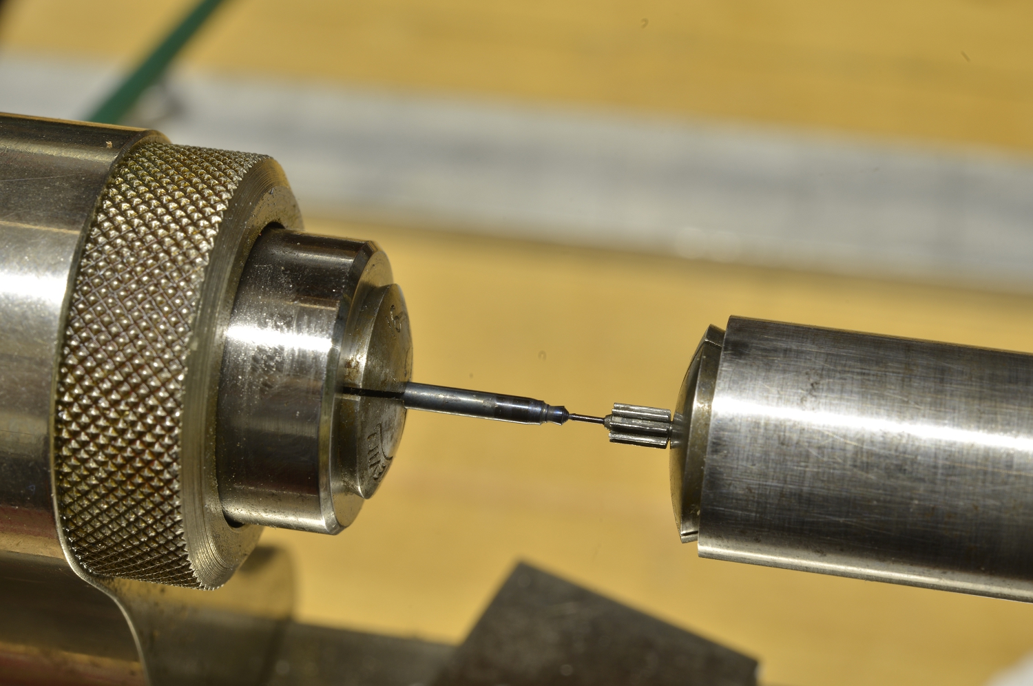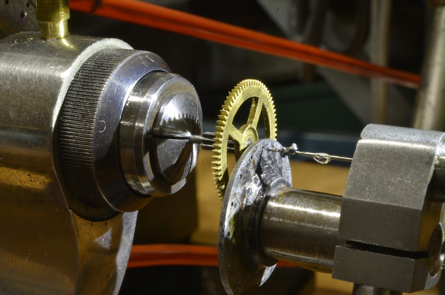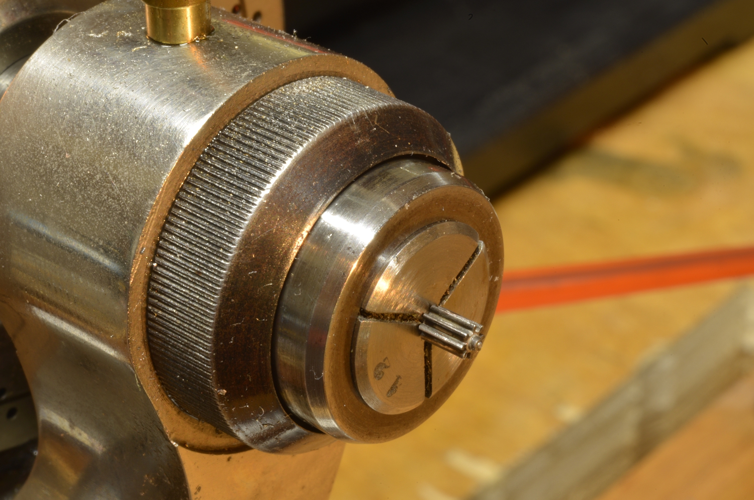 Every pivot needs to br burnished and polished. This special attachment, held in the tailstock, makes this easy as it supports the delicate pivot